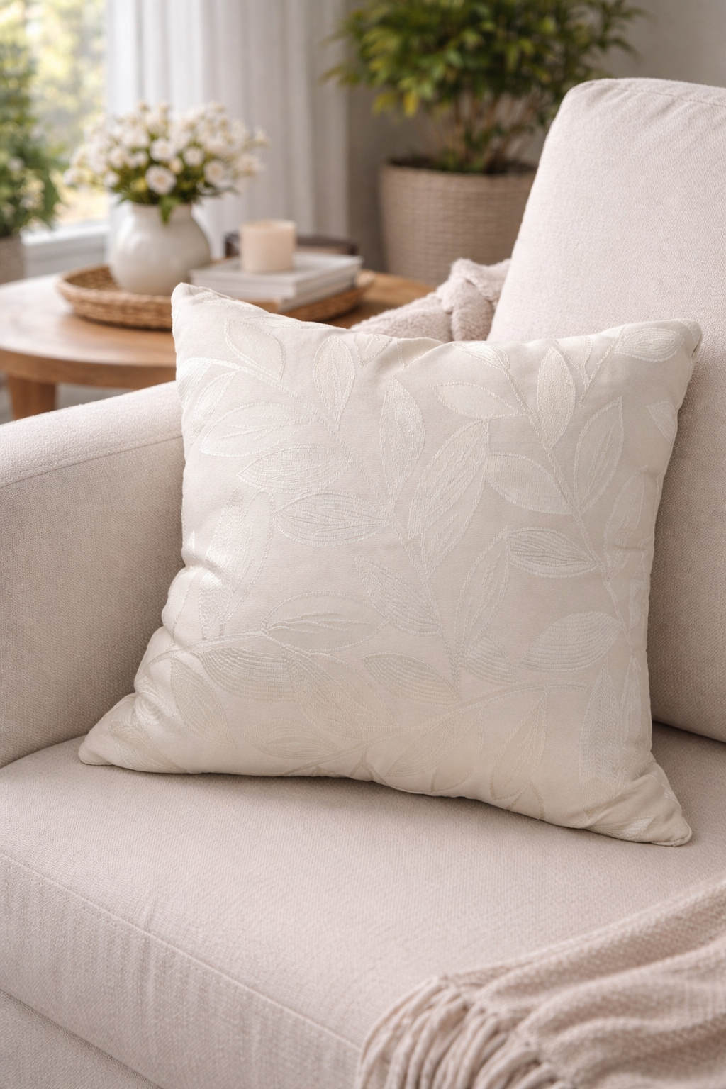 Apportez une touche de douceur et d’élégance à votre intérieur avec le coussin Feuilles de Coton.